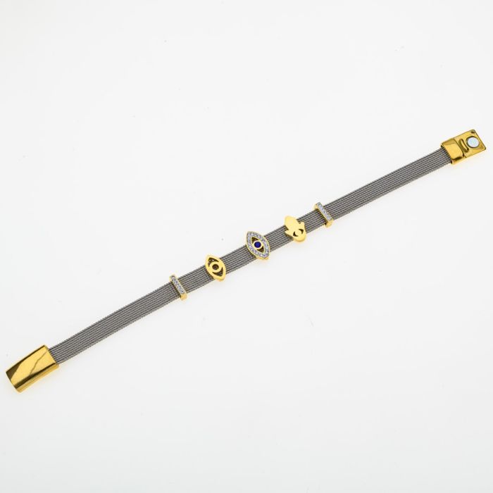 Βραχιόλι από ανοξείδωτο ατσάλι με χρυσές λεπτομέρειες και φυλαχτό ματάκι