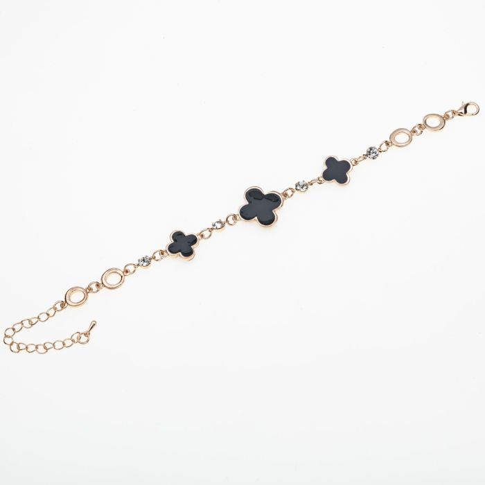 Βραχιόλι με μαύρα τετράφυλλα και λεπτομέρειες από ροζ χρυσό