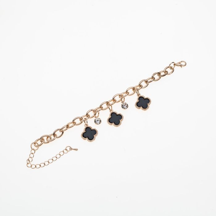 Βραχιόλι με μαύρα τετράφυλλα και λεπτομέρειες από στρογγυλά στρας