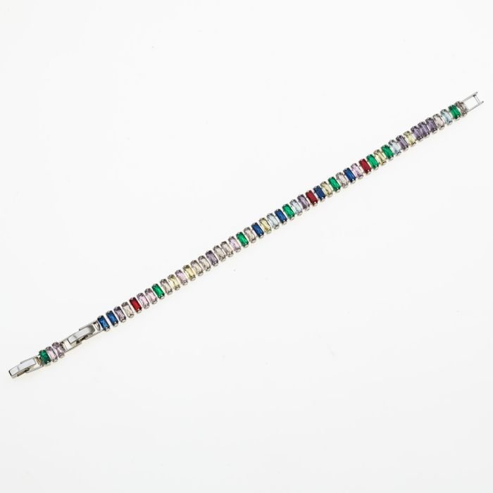 Βραχιόλι Μεταλλικό Ριβιέρα με Πολύχρωμες Πέτρες: Η Πολυτέλεια του Ουράνιου Τόξου στον Καρπό Σας