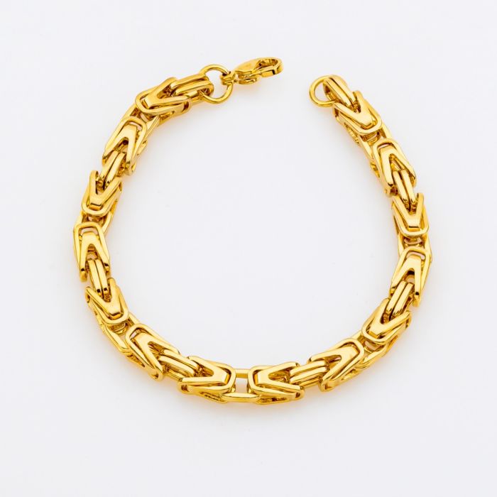 Ανακαλύψτε ένα χρυσό βραχιόλι που ξεπερνά τα συνηθισμένα, με την περίτεχνη πλέξη του να προσδίδει έναν αέρα αρχοντικής κομψότητας. Είναι το απόλυτο κόσμημα για τη γυναίκα που επιθυμεί να κάνει μια δυναμική δήλωση στυλ, προσθέτοντας μια αίσθηση διαχρονικής πολυτέλειας και μοναδικότητας σε κάθε της εμφάνιση.