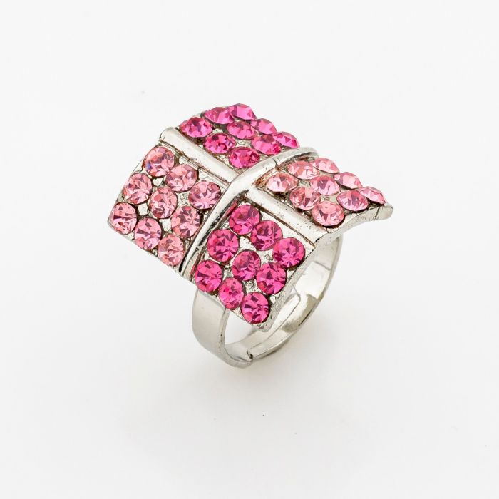 Description / Δαχτυλίδι μεταλλικό ασημί τετράγωνο χωρισμένο σε μικρότερα τετράγωνα διακοσμημένο με στράς