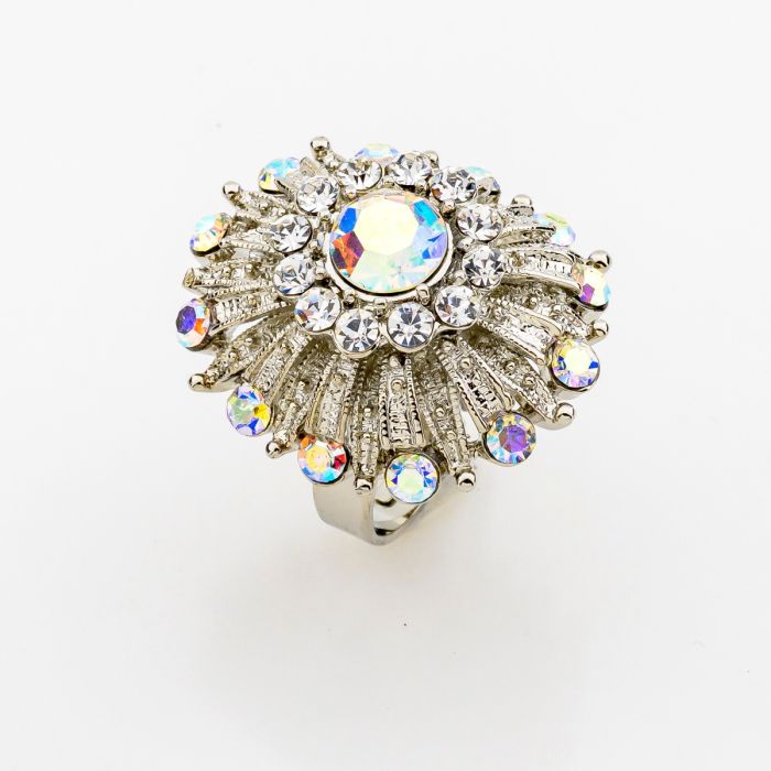 Δαχτυλίδι μεταλλικό σε ασημί χρώμα,μεγάλο εντυπωσιακό σχέδιο με στράς (6 χρώματα)