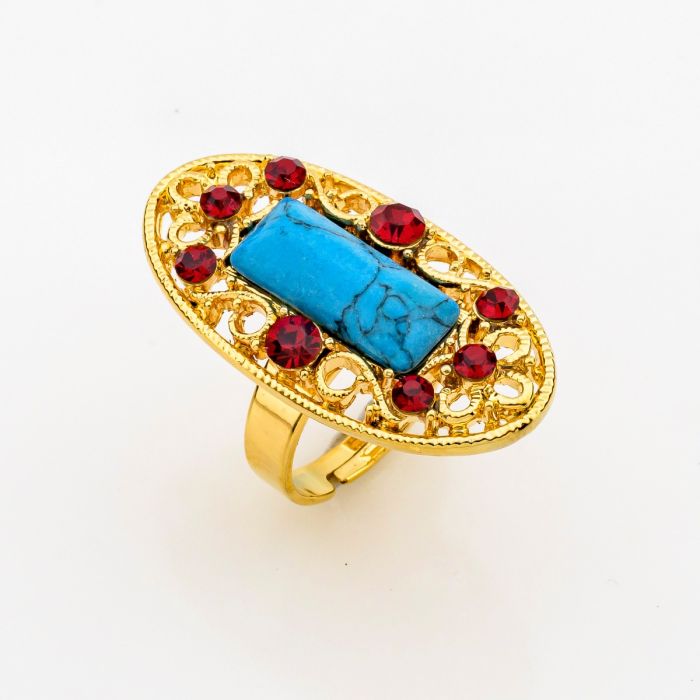 Description / Δαχτυλίδι μεταλλικό σε χρυσό χρώμα με μπλέ πέτρα και στράς (6 χρώματα)