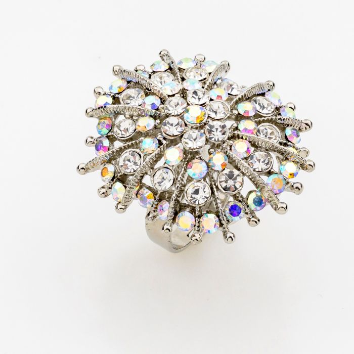 Δαχτυλίδι σε ασημί χρώμα με μεγάλο εντυπωσιακό σχέδιο διακοσμημένο με στράς