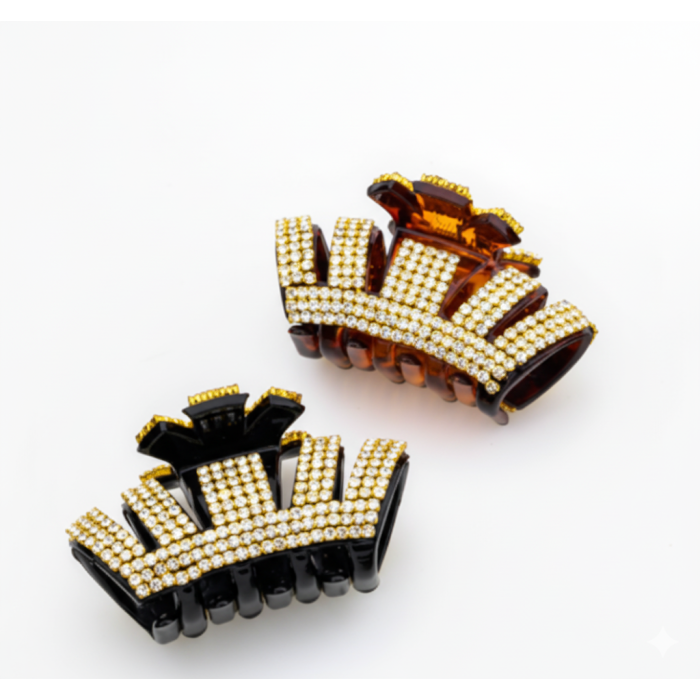Κάθε γυναίκα αξίζει να νιώθει σαν βασίλισσα, και αυτό το υπέροχο κλάμερ είναι εδώ για να κάνει την επιθυμία σας πραγματικότητα! Με το εντυπωσιακό του σχέδιο κορώνας, διακοσμημένο με λαμπερά στρας, αυτό το αξεσουάρ είναι ο απόλυτος τρόπος να προσθέσετε μια δόση λάμψης, κομψότητας και παραμυθένιας αίσθησης σε κάθε σας εμφάνιση.