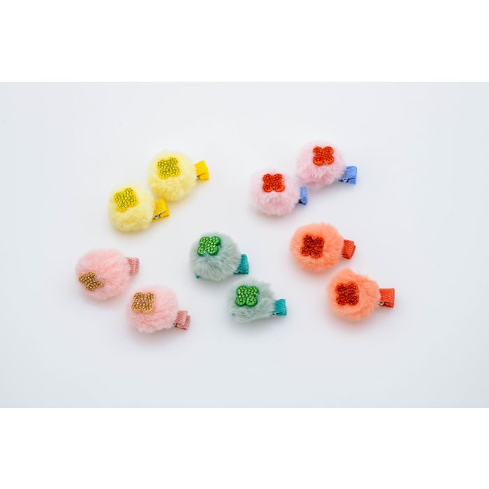 Κλιπ με πομ πομ και λουλούδι σε 5 χρώματα