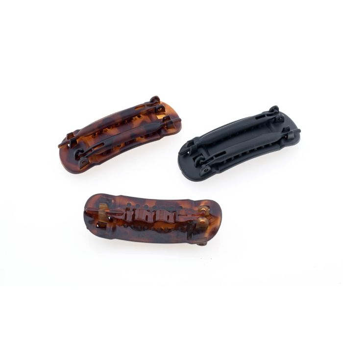 Κατασκευασμένα εξ ολοκλήρου από ποιοτικό, λείο πλαστικό, έχουν σχεδιαστεί με γνώμονα την ασφάλεια και την αντοχή. Η απουσία μεταλλικών μερών σημαίνει μηδενικό κίνδυνο για σκουριά ή τράβηγμα της τρίχας. Ο κλασικός, αποδεδειγμένα αποτελεσματικός μηχανισμός "snap" παρέχει ένα ισχυρό κράτημα που δεν γλιστράει, ενώ τα ουδέτερα χρώματα (μαύρο και καφέ) τα καθιστούν την ιδανική, διακριτική επιλογή για κάθε εμφάνιση, συμπεριλαμβανομένης της σχολικής στολής.
