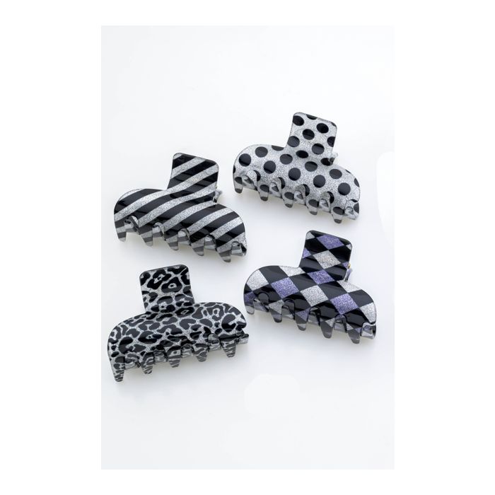 Προσθέστε μια τολμηρή πινελιά στυλ στα μαλλιά σας. Αυτά τα μικρά κλάμερ με μοντέρνα μοτίβα – ριγέ, πουά, καρό ή λεοπάρ – και λάμψη glitter, προσφέρουν άψογο κράτημα και εκφράζουν την προσωπικότητά σας με μια κίνηση.