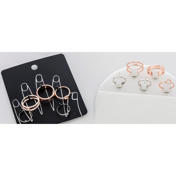 Description / Σέτ δαχτυλίδια μεταλλικά σε ασημί και ρόζ χρυσό (5 τεμάχια)