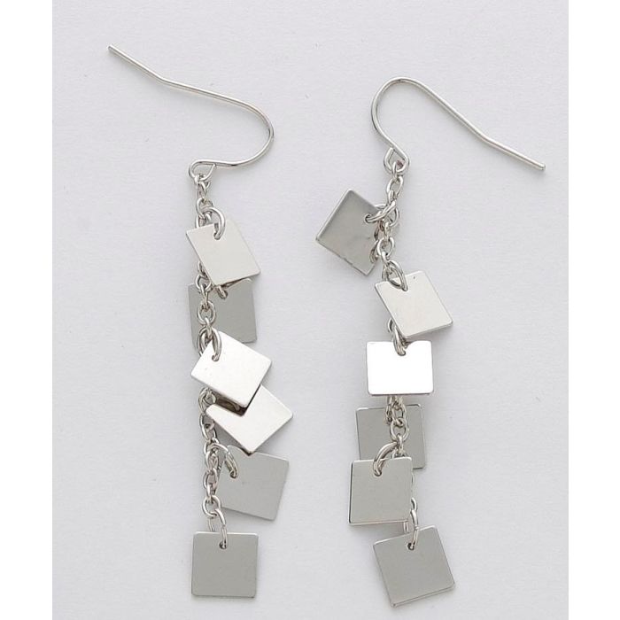 Σκουλαρίκια ασημένια αλυσίδα και κρεμαστά μεταλλικά τετράγωνα