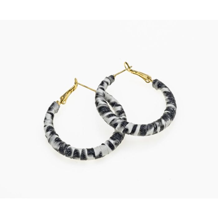 Σκουλαρίκια χρυσοί κρίκοι με ασπρόμαυρο σχέδιο