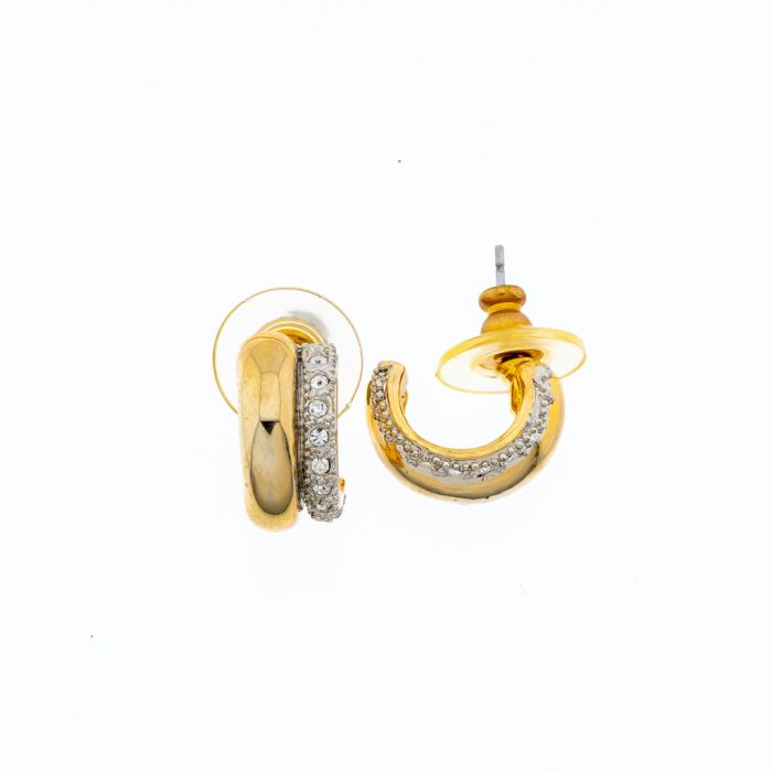 Description / Σκουλαρίκια διπλά μεταλλικά σε χρυσό χρώμα διακοσμημένα με στράς