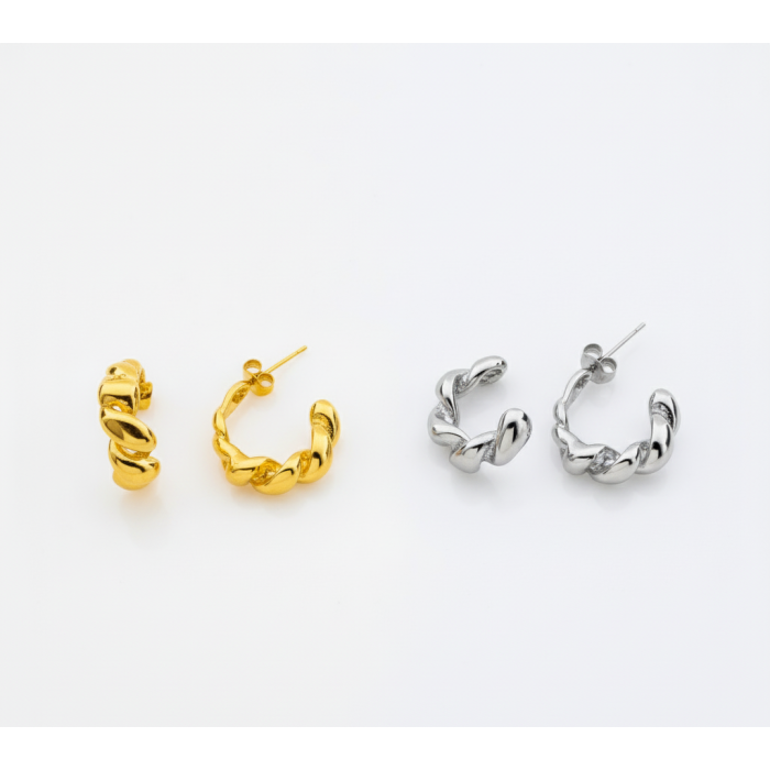 Αναδείξτε το στυλ σας με αυτά τα μοντέρνα σκουλαρίκια κρίκους με σπείρες! Ο τολμηρός και ταυτόχρονα κομψός τους σχεδιασμός προσθέτει μια μοναδική διάσταση σε κάθε εμφάνιση. Διαθέσιμα σε λαμπερό χρυσό ή ασημί, είναι το απόλυτο αξεσουάρ για να εκφράσετε την προσωπικότητά σας με έναν αβίαστα cool και σύγχρονο τρόπο.