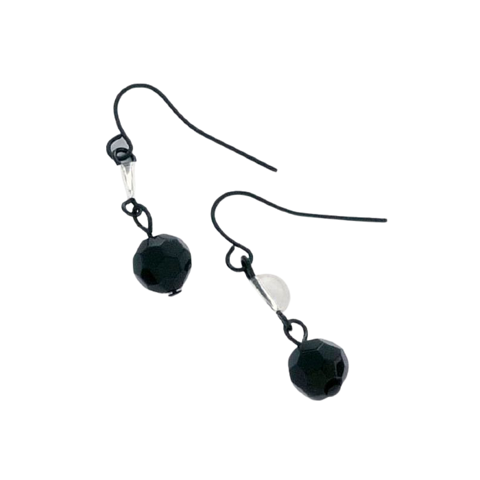 Σκουλαρίκια μεταλλικά 2εκ με ημιδιαφανή λευκή και μαύρη χάντρα
