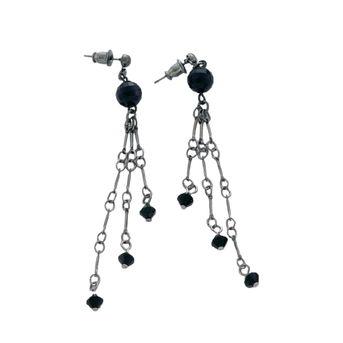 Σκουλαρίκια μεταλλικά αλυσίδες μαύρες χάντρες