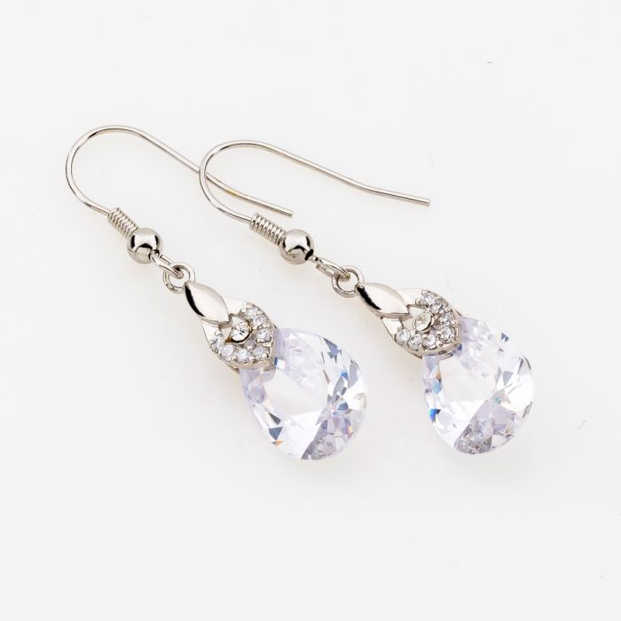 Description / Σκουλαρίκια μεταλλικά ασημί κρεμαστά 3εκ με ζιργκόν