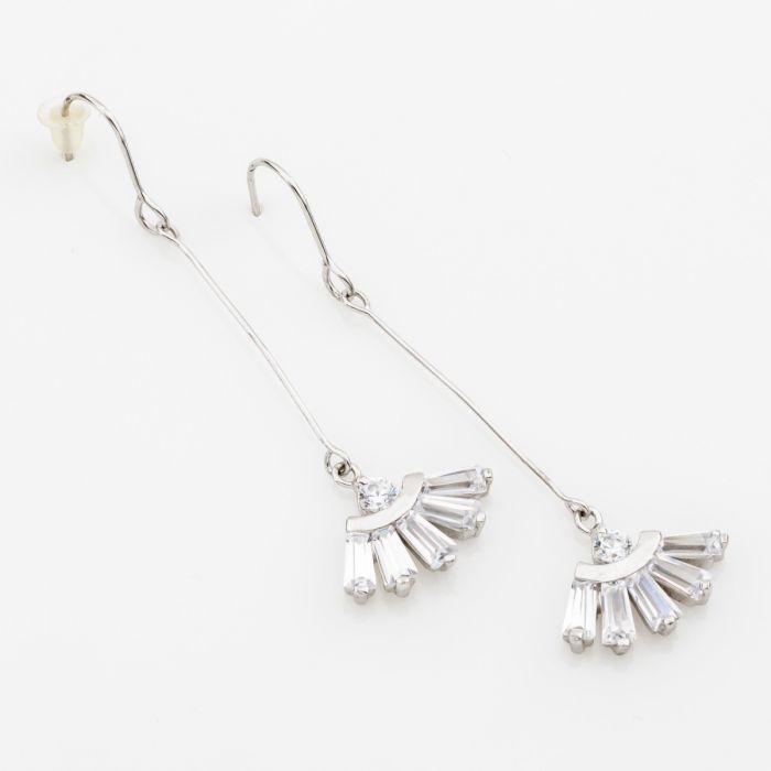 Description / Σκουλαρίκια μεταλλικά ασημί κρεμαστά διακοσμημένα με ζιργκόν σχέδιο βεντάλια