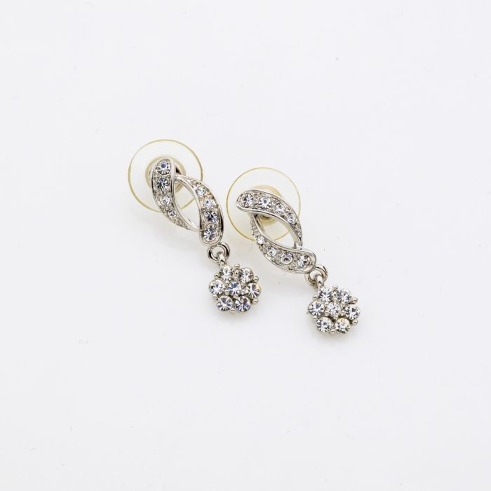 Description / Σκουλαρίκια μεταλλικά ασημί κρεμαστά λουλούδι με στράς