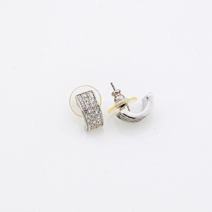 Σκουλαρίκια μεταλλικά ασημί κρικάκι τριπλό με στράς