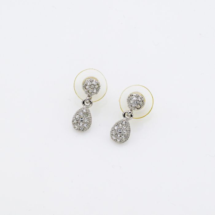 Σκουλαρίκια μεταλλικά ασημί με λευκά στράς