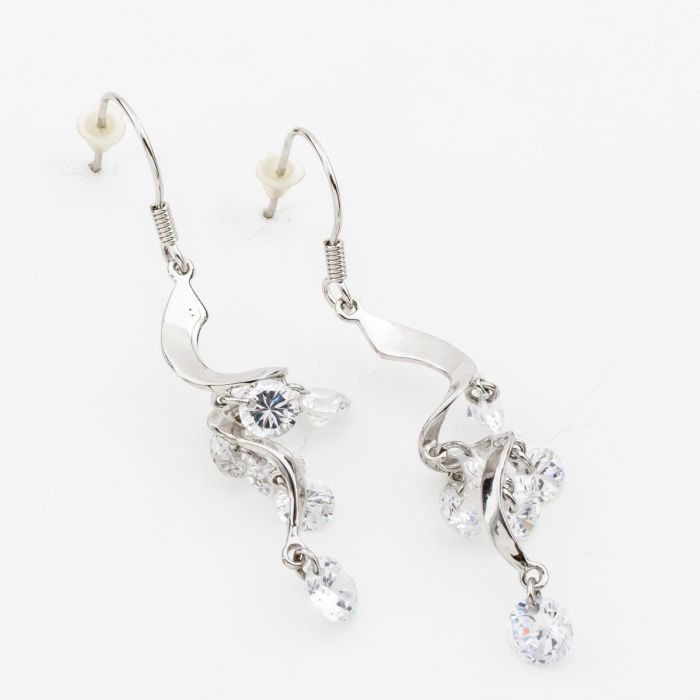 Σκουλαρίκια μεταλλικά ασημί με μικρά ζιργκόν σε 4 χρώματα