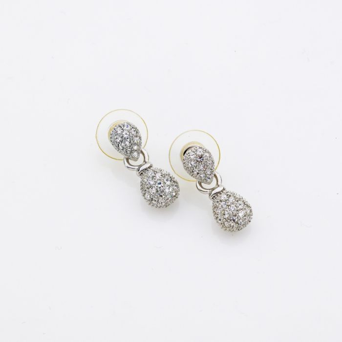 Description / Σκουλαρίκια μεταλλικά ασημί μικρά με στράς