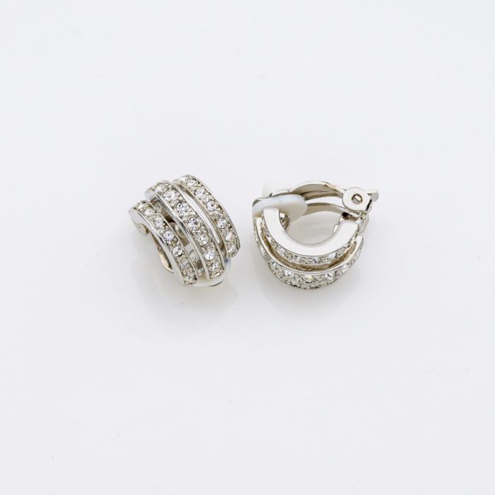 Description / Σκουλαρίκια μεταλλικά ασημί σχέδιο τριπλό κρικάκι διακοσμημένα με στράς
