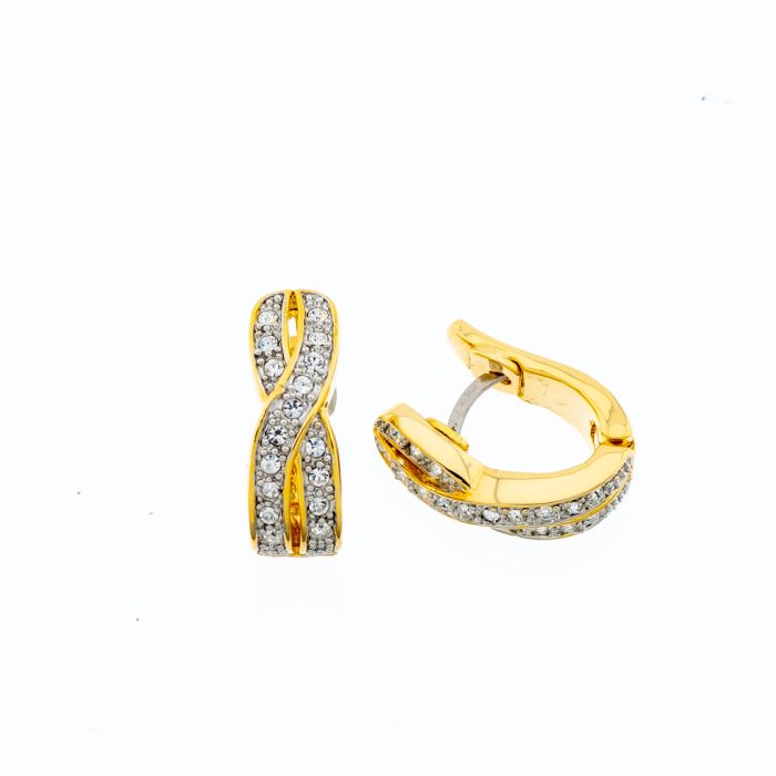 Σκουλαρίκια μεταλλικά διακοσμημένα με λευκά στράς σε χρυσό χρώμα