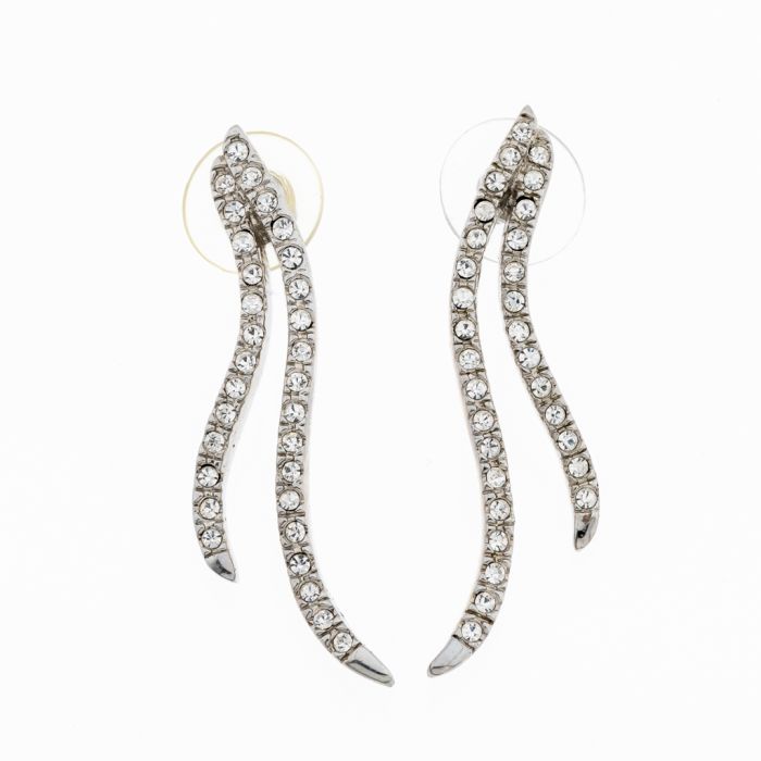 Description / Σκουλαρίκια μεταλλικά φύλλο ασημί με λευκά στράς