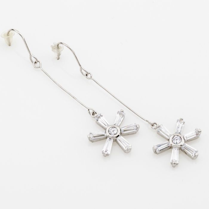 Σκουλαρίκια μεταλλικά κρεμαστά με ζιργκόν σχέδιο ήλιος