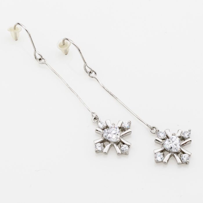 Σκουλαρίκια μεταλλικά κρεμαστά σχέδιο σταυρός διακοσμημένος με ζιργκόν