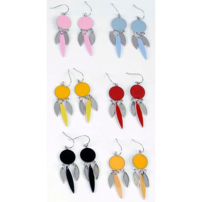 Σκουλαρίκια μεταλλικά κρεμαστά σε 6 χρώματα με στρογγυλές και οβάλ λεπτομέρειες
