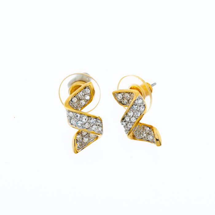 Σκουλαρίκια μεταλλικά κύμα 1εκ χρυσό χρώμα διακοσμημένα με στράς