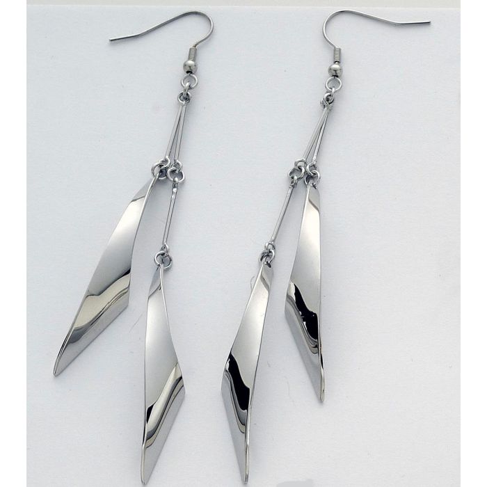 Description / Σκουλαρίκια μεταλλικά μακριά κρεμαστά σε ασημί χρώμα