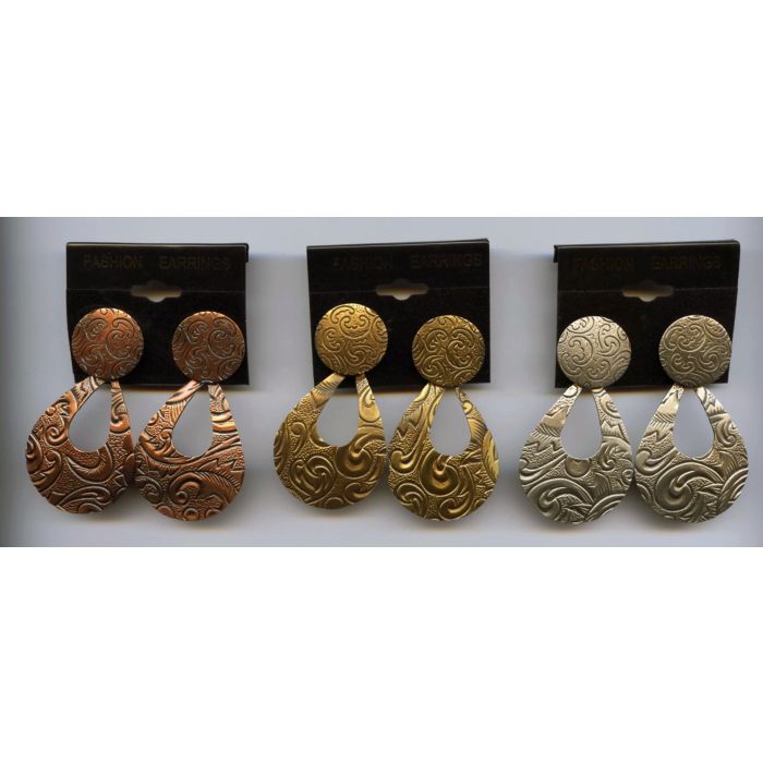 Σκουλαρίκια μεταλλικά με χαραγμένο σχέδιο σε σχήμα δάκρυ