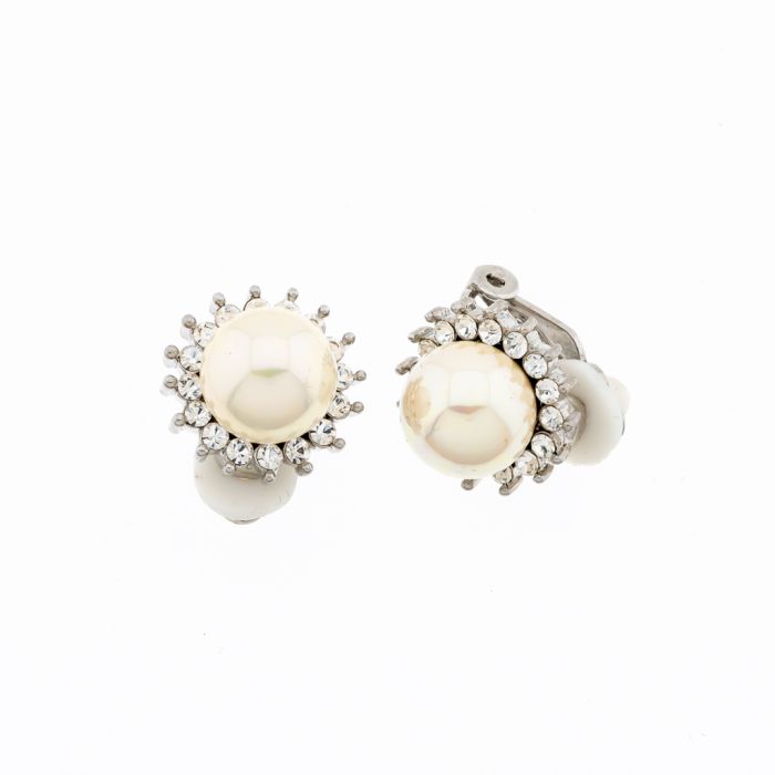 Σκουλαρίκια-Κλιπ "Ήλιος" με Στρας & Πέρλα: Ηλιακή Λάμψη & Κομψότητα