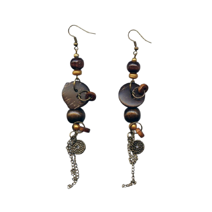 Σκουλαρίκια μεταλλικά με λεπτομέρειες ξύλινες