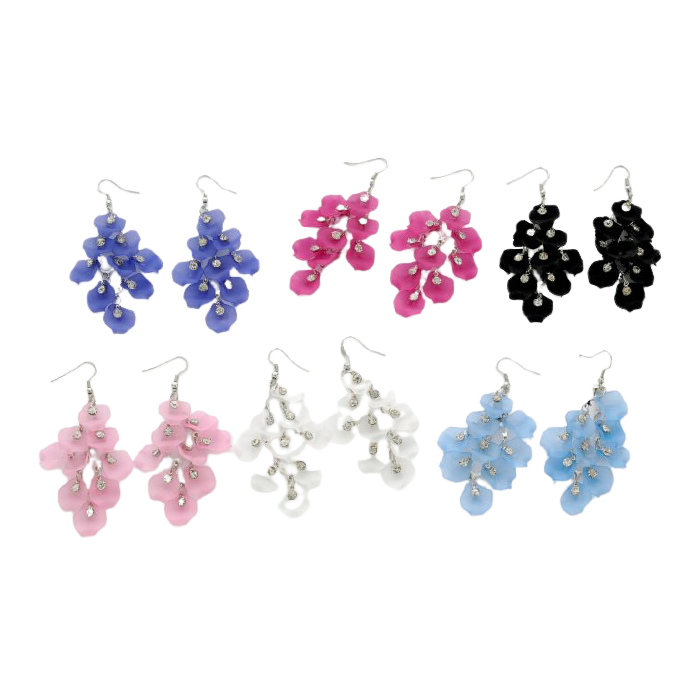 Εντυπωσιακά μεταλλικά σκουλαρίκια με πλαστικά φύλλα, διακοσμημένα με λαμπερά λευκά στράς, που συνδυάζουν φυσική απαλότητα και κομψότητα. Ιδανικά για κάθε περίσταση, από casual looks έως εξόδους το βράδυ, προσφέρουν ρομαντική λάμψη και μοναδικό στυλ.