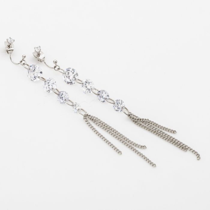 Σκουλαρίκια μεταλλικά με στρογγυλά ζιργκόν και αλυσίδες