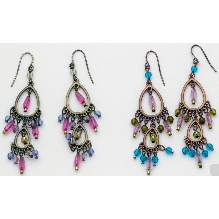 Description / Σκουλαρίκια μεταλλικά μπρονζέ διπλό δάκρυ διακοσμημένα με χάντρες