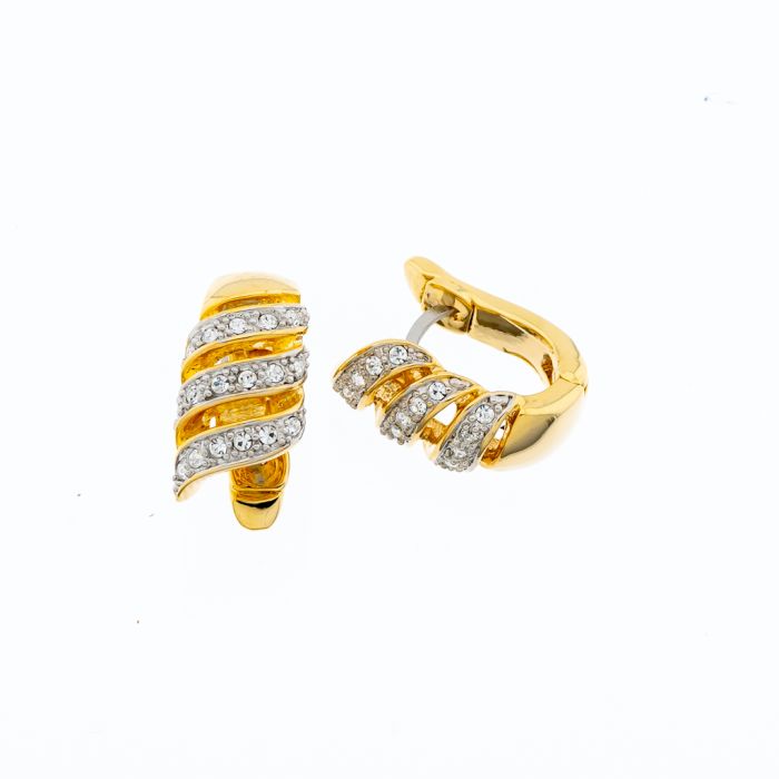 Σκουλαρίκια μεταλλικά οβάλ σε χρυσό χρώμα διακοσμημένα με σειρές απο στράς