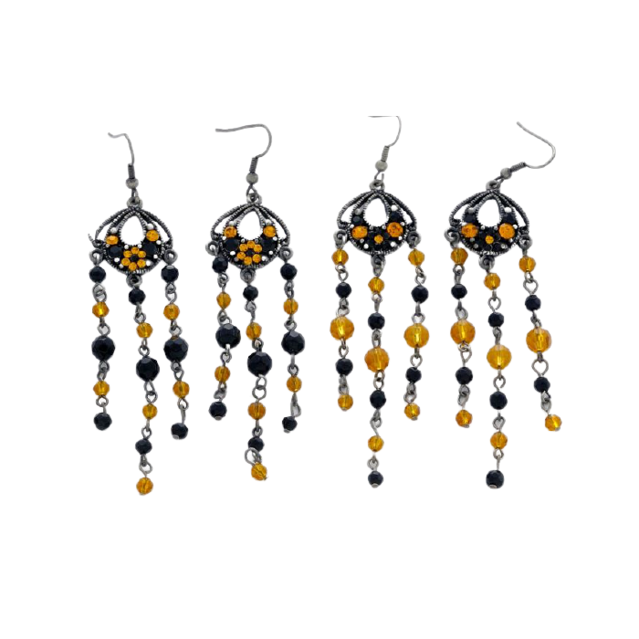 Σκουλαρίκια μεταλλικά παλαιωμένα διακοσμημένα με μαύρα και πορτοκαλί στράς