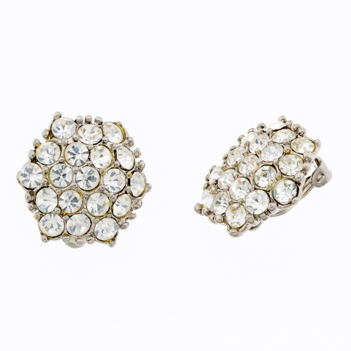 Σκουλαρίκια μεταλλικά πολύγωνα σε ασημί χρώμα διακοσμημένα με λευκά στράς