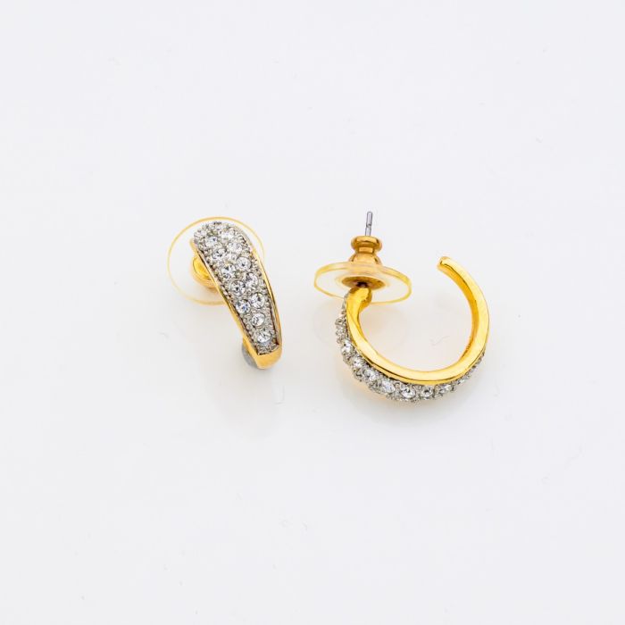 Description / Σκουλαρίκια μεταλλικά σε χρυσό χρώμα κρικάκι με λευκά στράς