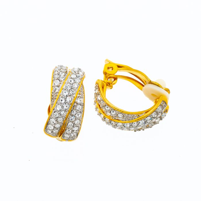 Σκουλαρίκια μεταλλικά σε χρυσό χρώμα πλεκτά διακοσμημένα με λευκά στράς