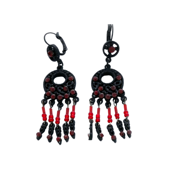 Μεταλλικά Boho Σκουλαρίκια : Μαύρο με Κόκκινες Χάντρες