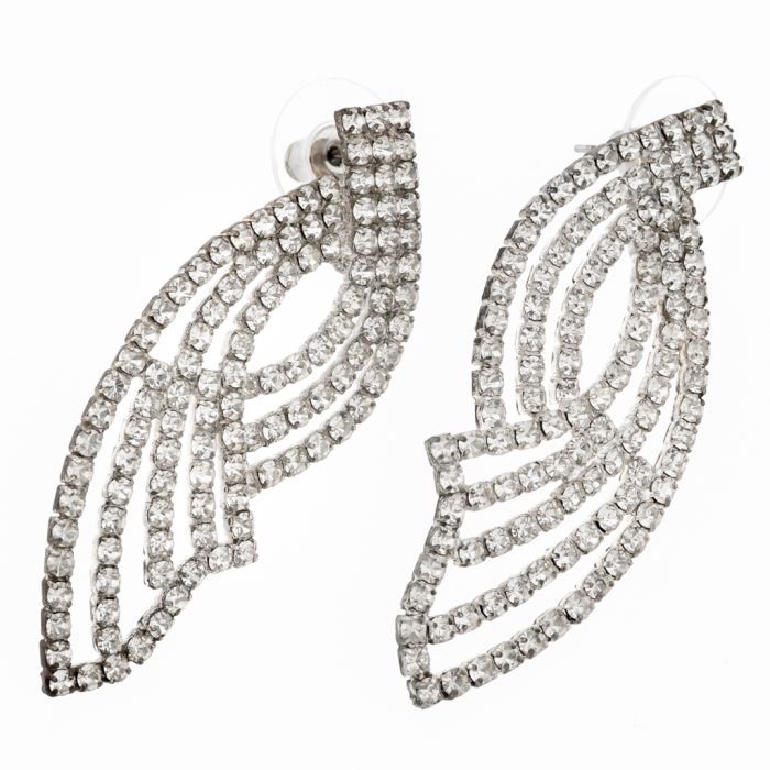 Σκουλαρίκια μεταλλικά σε σχήμα φτερά αγγέλου διακοσμημένα με λευκά στράς