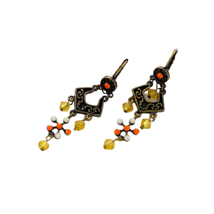 Σκουλαρίκια μεταλλικά σκαλιστά με στράς και χάντρες