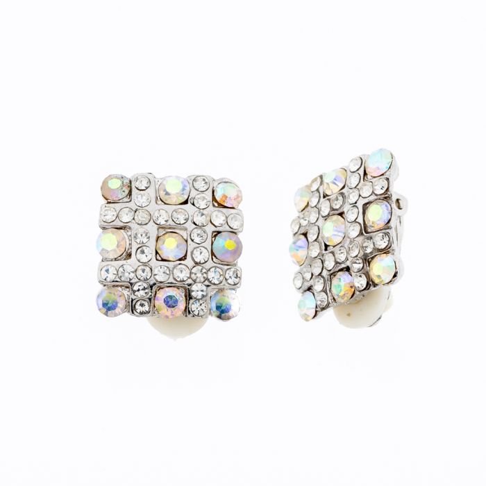 Σκουλαρίκια μεταλλικά τετράγωνα ασημί με στράς